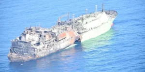 The drifting Russian LNG tanker Arctic Metagaz has turned into